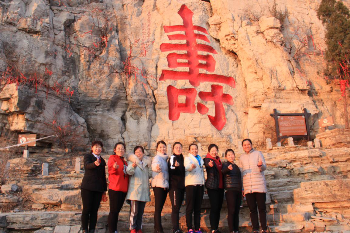 大家的積極性都很高,報(bào)名人員全部到齊。合影留念,留下我們了活力、團(tuán)結(jié)、奮進(jìn)的身影。綜管部李幫新部長(zhǎng)發(fā)表簡(jiǎn)短講話(huà),為大家加油鼓勁。李部長(zhǎng)發(fā)布登山比賽開(kāi)始令后,車(chē)管服務(wù)的董琳箭一般的沖了出去,大家拼盡全力緊隨其后,向著比賽的終點(diǎn)--云門(mén)山巨“壽”出發(fā)……一路上大家緊張中仍有說(shuō)有笑,互幫互助向著山頂攀登。在山的中間位置--云門(mén)山寺廟大家對(duì)行進(jìn)路線(xiàn)產(chǎn)生了分歧,出現(xiàn)了兩路“人馬”向終點(diǎn)沖擊。越到頂峰大家的精力越充沛,“風(fēng)好正是揚(yáng)帆時(shí),不待揚(yáng)鞭自?shī)^蹄”,近了、近了,云門(mén)的紅色巨“壽”離我們?cè)絹?lái)越近,首當(dāng)其沖的是財(cái)務(wù)部的肖霞,僅用了19分鐘,其她的選手,也緊跟其后到達(dá)了終點(diǎn)。迎著晨曦,巨“壽”見(jiàn)證,全體人員進(jìn)行了合影,留下了東虹女工活潑、運(yùn)動(dòng)、靚麗的女神風(fēng)采。