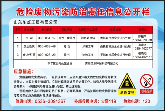 山東東虹工貿(mào)有限公司現(xiàn)就危險(xiǎn)廢物污染防治責(zé)任信息公開如下: