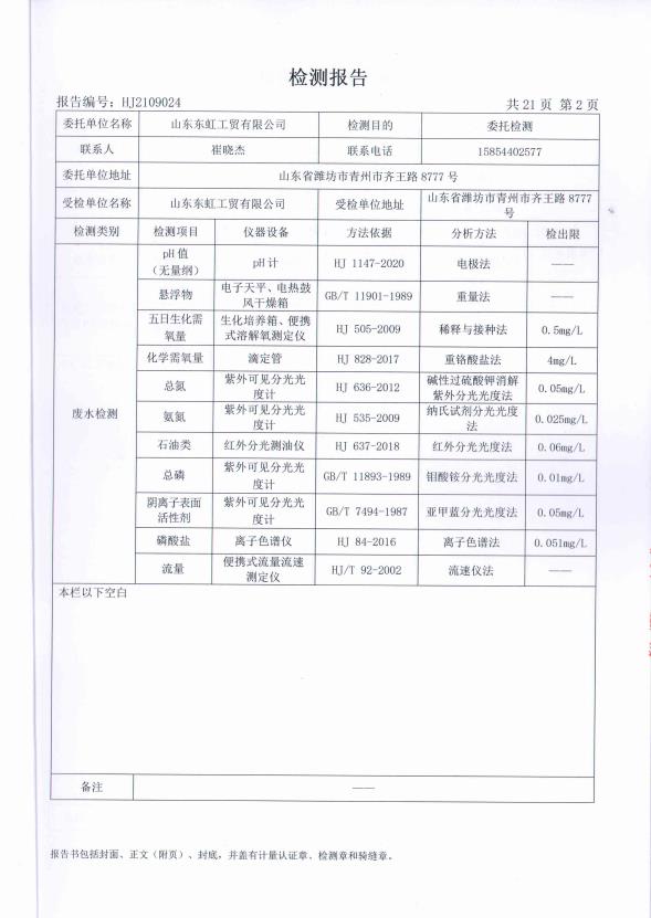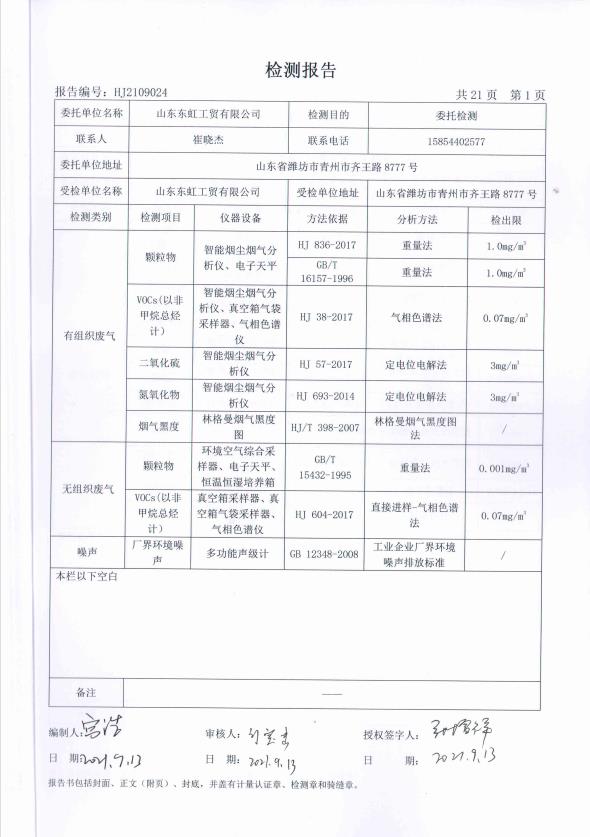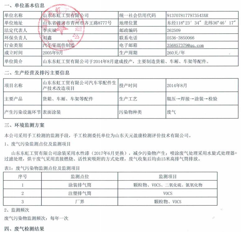 山東東虹工貿(mào)有限公司環(huán)境信息公開表