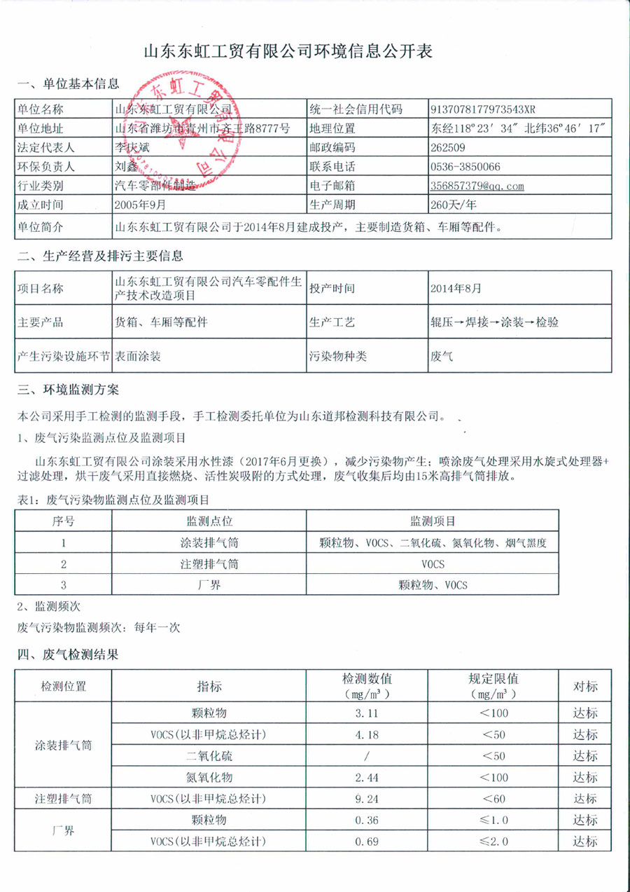 山東東虹工貿(mào)有限公司環(huán)境信息公開(kāi)表